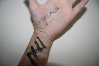 Beaster has be experimenting with different ways of recording the lengths swam in training. Working with idea of swimming as a meditive process, free writting has been employed, a notebook placed at the end of the pool so thoughts can be written by corresponding length numbers. Beaster has also begun tallying on the surface of the skin with permanent marker. This seems an effective technique, as it allows the mind to flow freely whilst an acurate record is kept.
